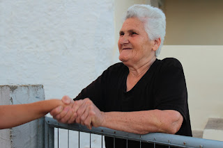 At the center of town we met Glory and she was serving frappes to the local chess-playing men--such a Greek thing. She was so lovely and after explaining what we were doing gave us canned Lipton Lemon and then in further conversation insisted we take an ice cream. I hate when that happens. It turned out she has a sister in Florida about 2 hours away from my driver, Deb, and they will hopefully get in touch when she returns to the states. It was so wonderful and her hospitality was almost offensive--I would have never treated someone with that much kindness and welcome them into my home and business the way she did. She prayed blessings over us and we were thus welcome in the village to finish our job and get Bibles out to everyone. The men read their New Testaments in the shade of the opposite building, drinking their frappes. They also let us take lots of photos of them.